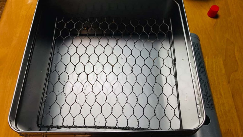 菓子缶を軽く洗って、たしか100円ショップで買った網みたいなのを下に敷いてみました。網がなくても別の物で代用できると思います。