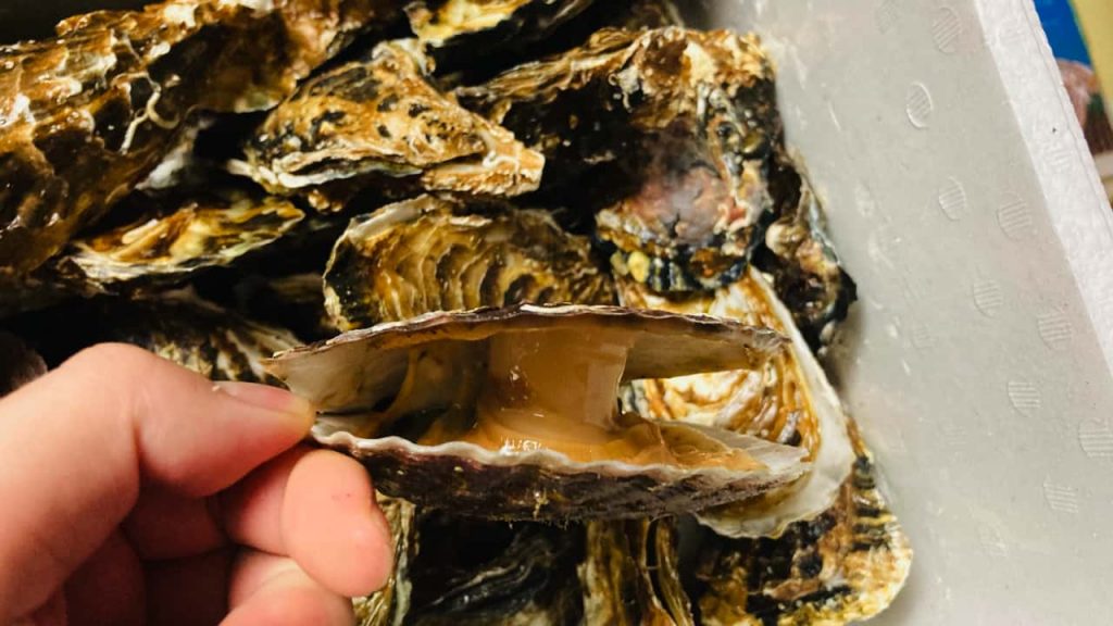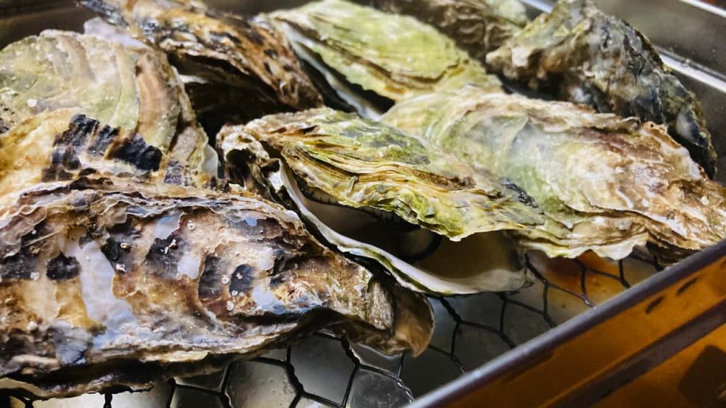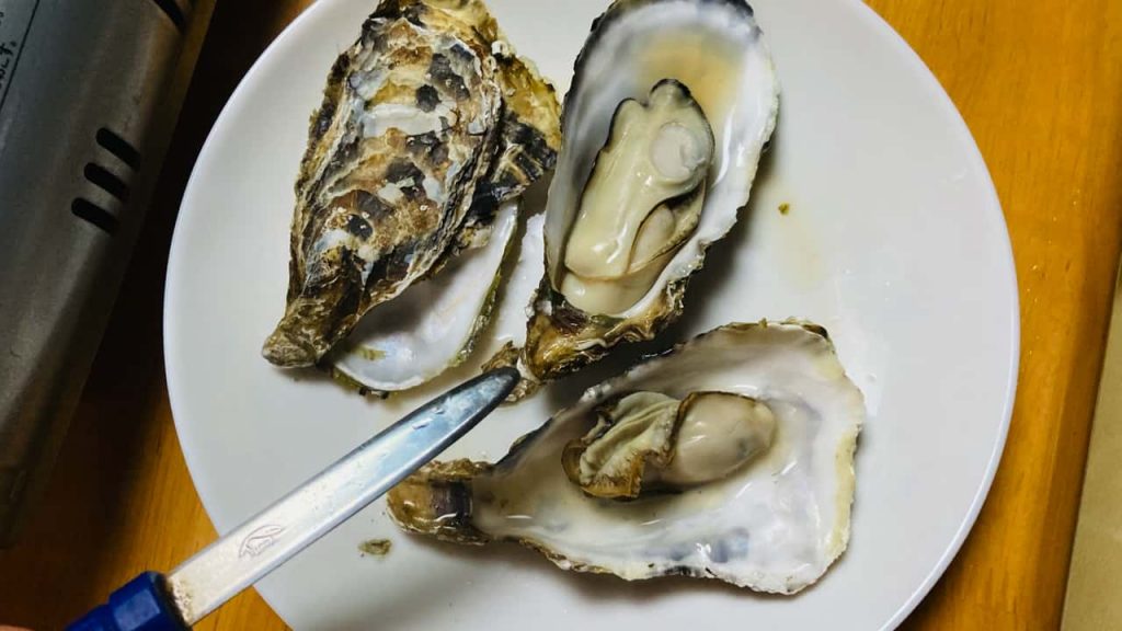 牡蠣は丸い方を下にしておくと汁がこぼれにくいです。