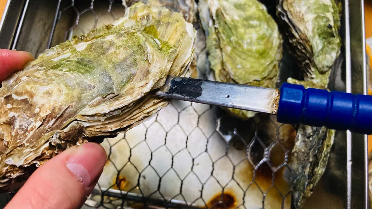 怪我をしないよう注意しながら、こんな感じの尖ったもので牡蠣をこじ開けます。