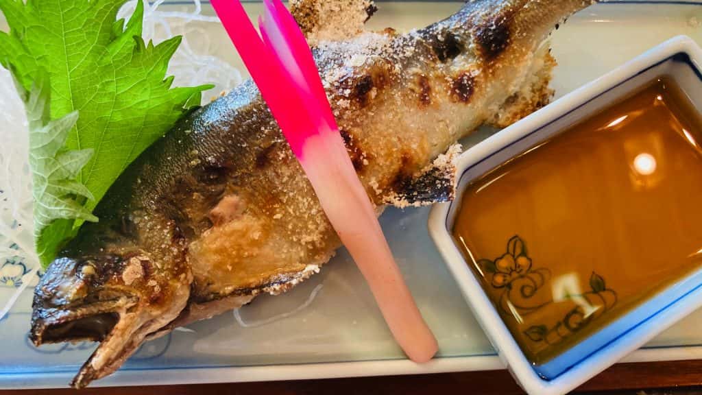 鮎の塩焼き。こちらも肉厚でふわふわして美味しかったですね。