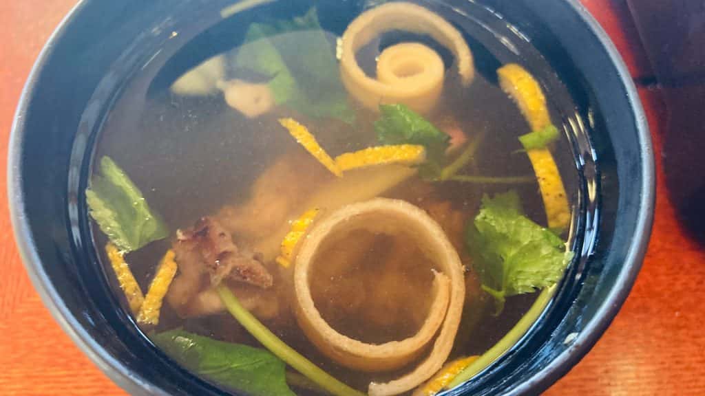 肝吸いも一緒についてきます。キモがふわふわして美味しいです。