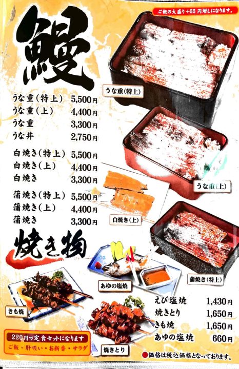 うな重のメニュー
