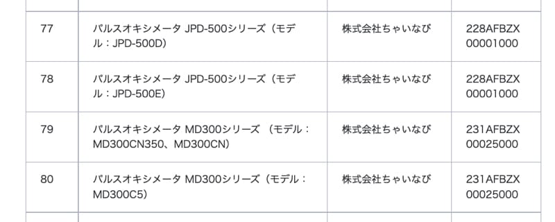 以下のように「株式会社ちゃいなび」から販売されている JPD-500E は厚生労働省から認証されています。